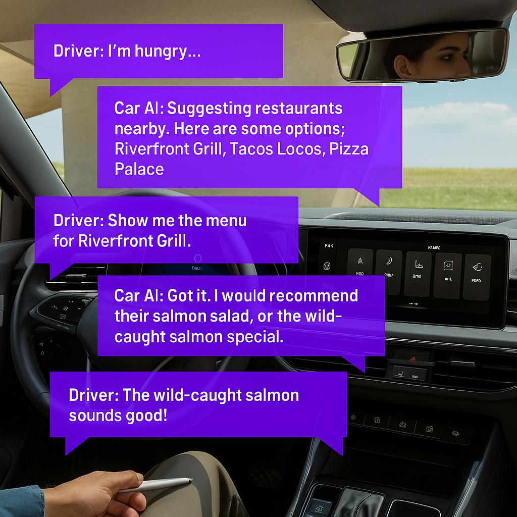 Connect with drivers on the go by enabling seamless food ordering through in-car voice assistants.